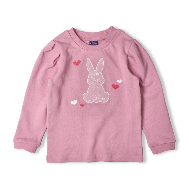 ハートモチーフ入りうさぎアップリケ裏毛トレーナー(ピンク-110cm)