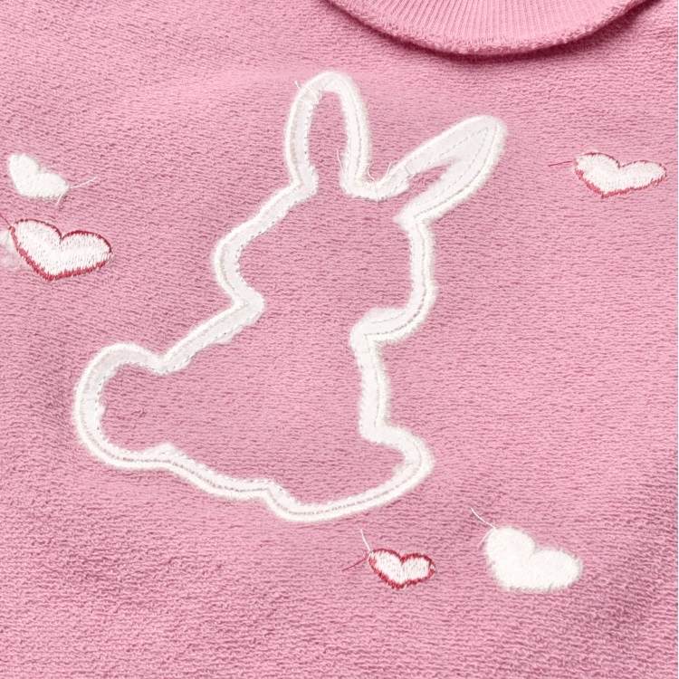 ハートモチーフ入りうさぎアップリケ裏毛トレーナー(ピンク-80cm)