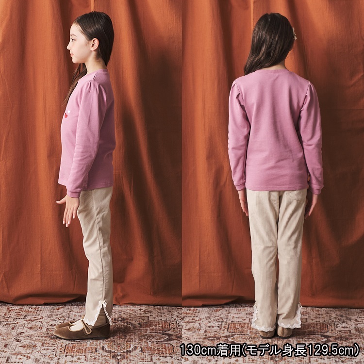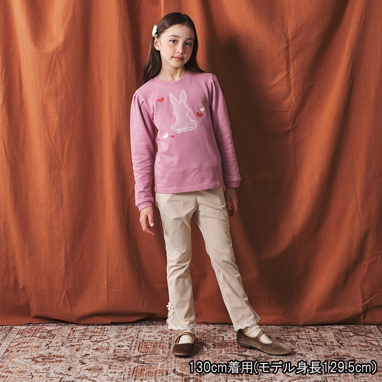 ハートモチーフ入りうさぎアップリケ裏毛トレーナー(ピンク-130cm)