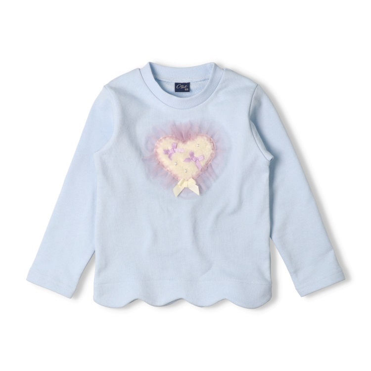 チュールハートモチーフ裏毛トレーナー(サックス-100cm)