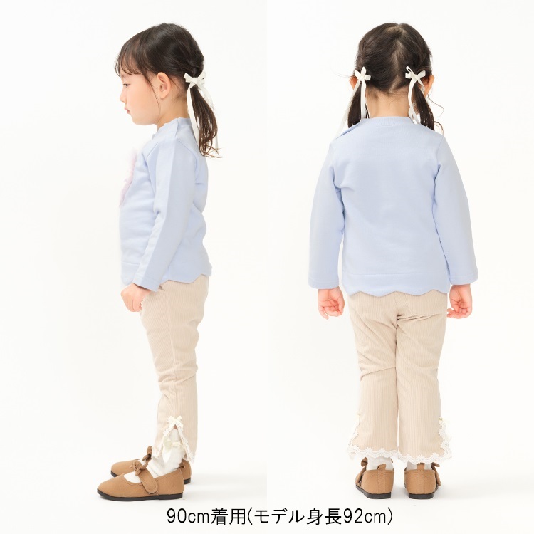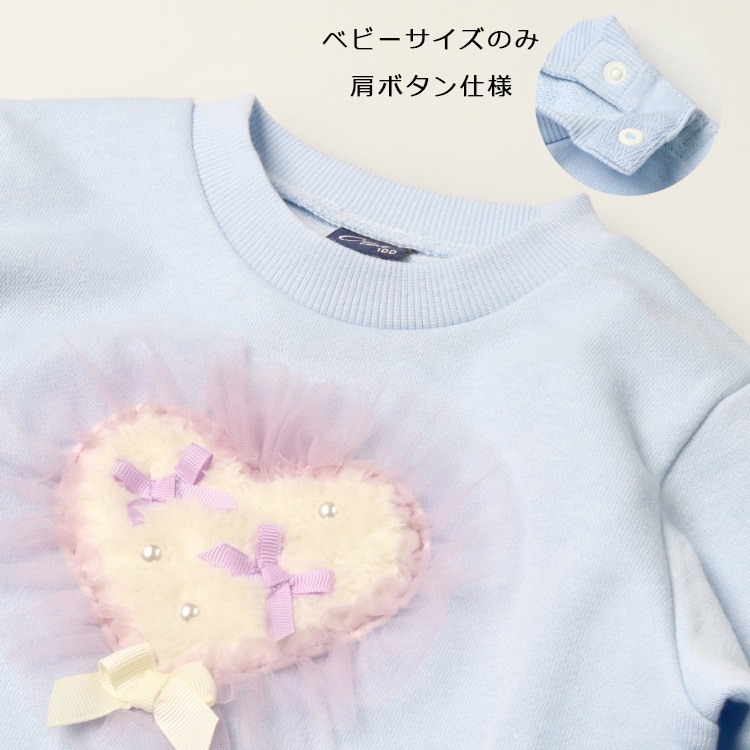 チュールハートモチーフ裏毛トレーナー(サックス-90cm)