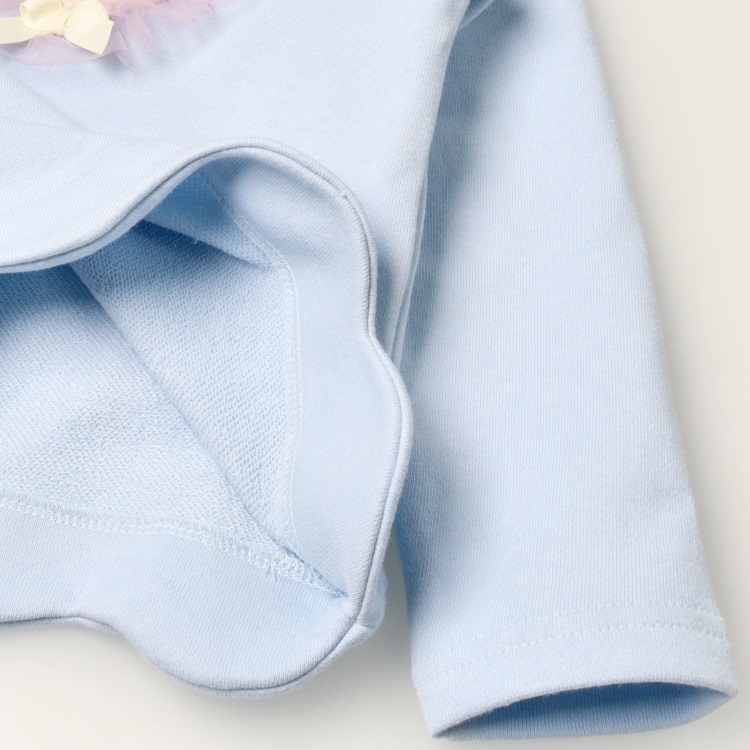 チュールハートモチーフ裏毛トレーナー(サックス-80cm)