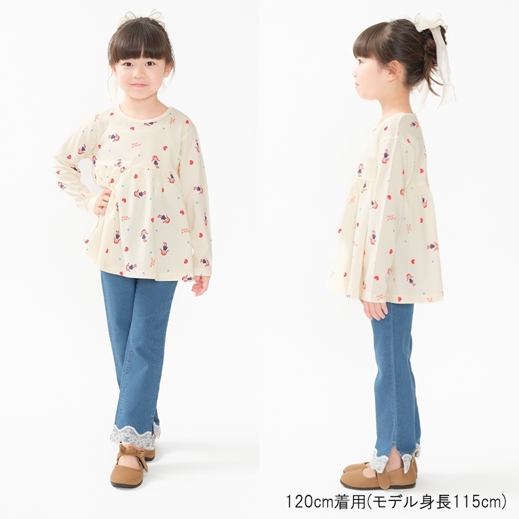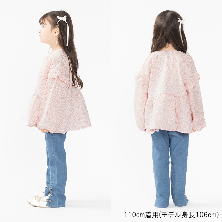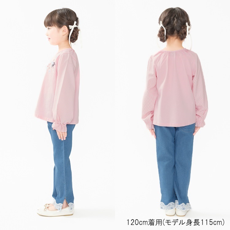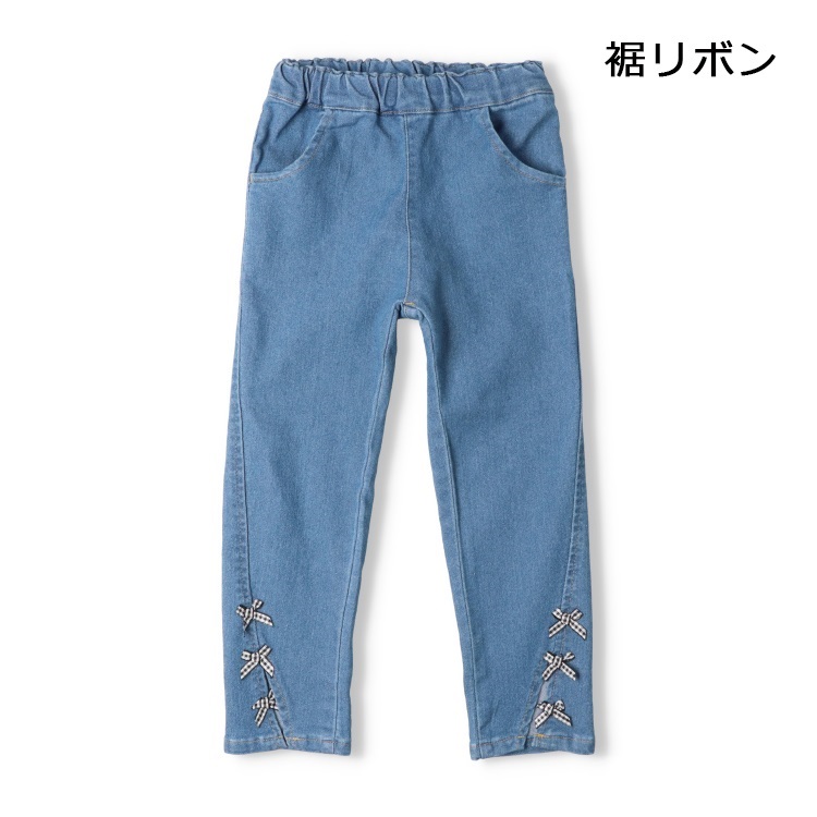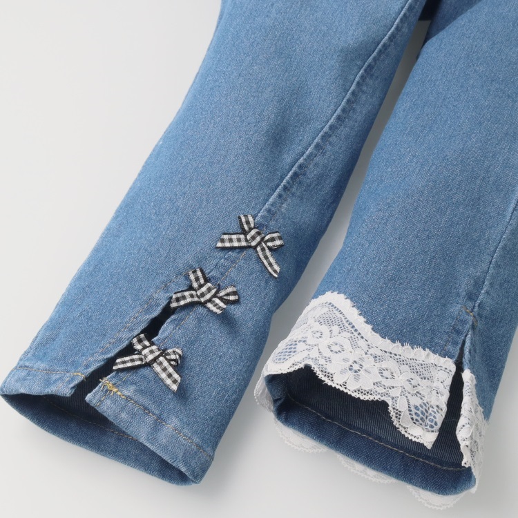 裾リボン・レースデニムロングパンツ(裾リボン-120cm)