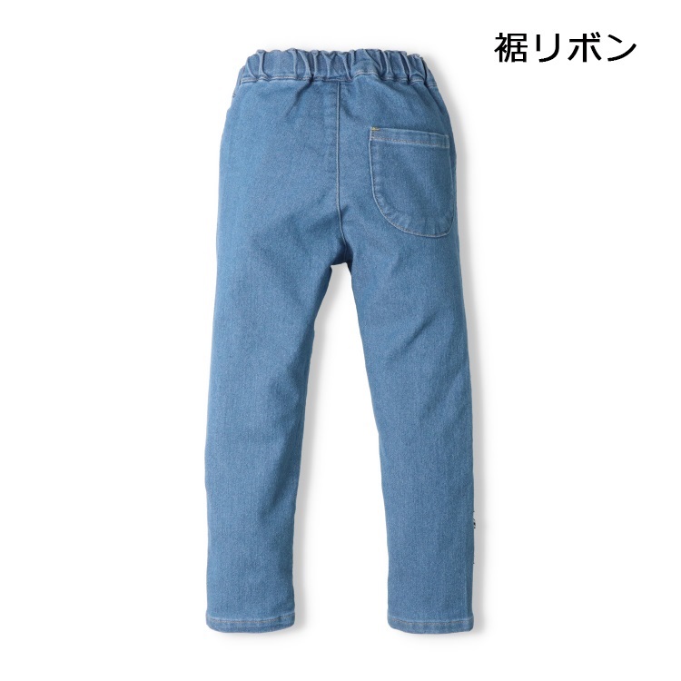 裾リボン・レースデニムロングパンツ(裾リボン-100cm)
