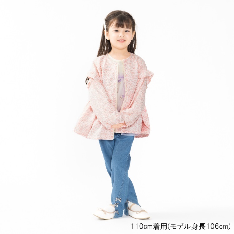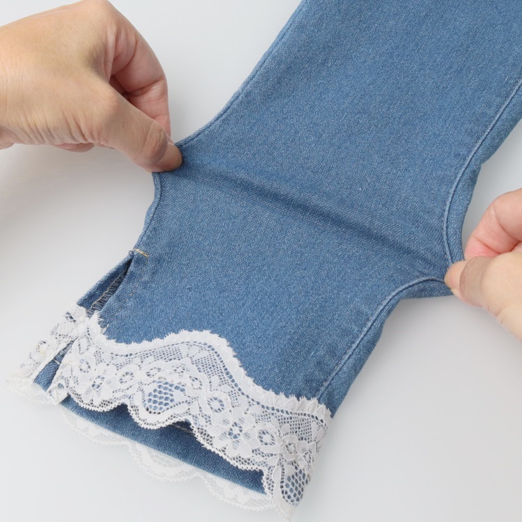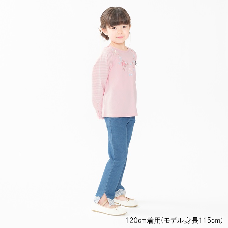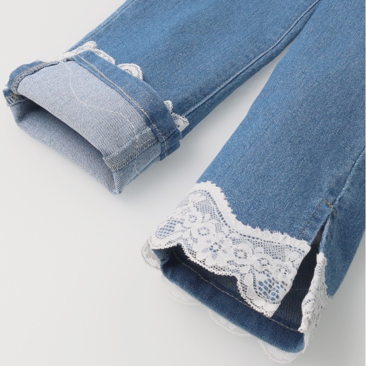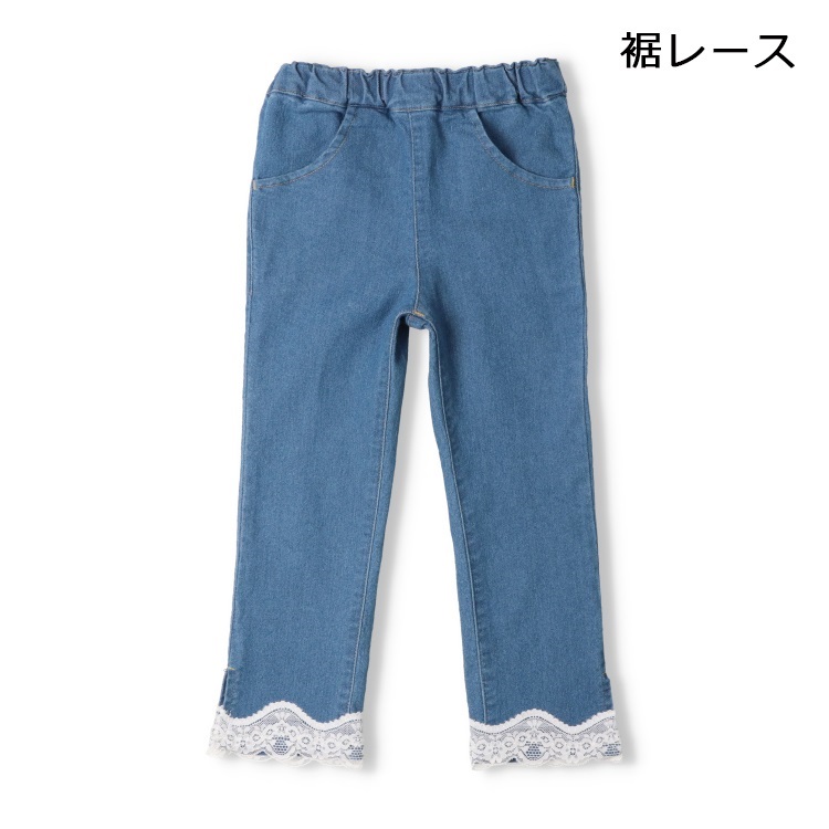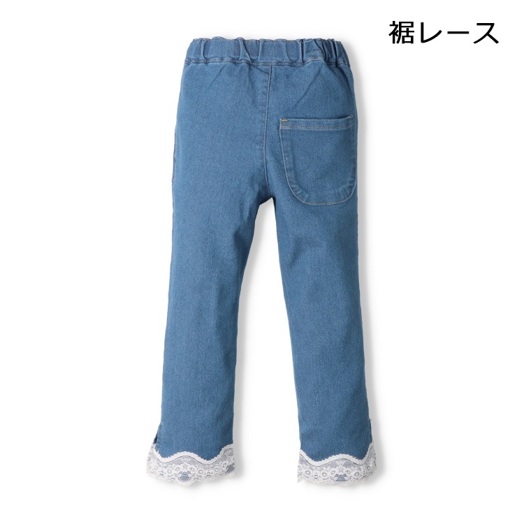 裾リボン・レースデニムロングパンツ(裾レース-120cm)
