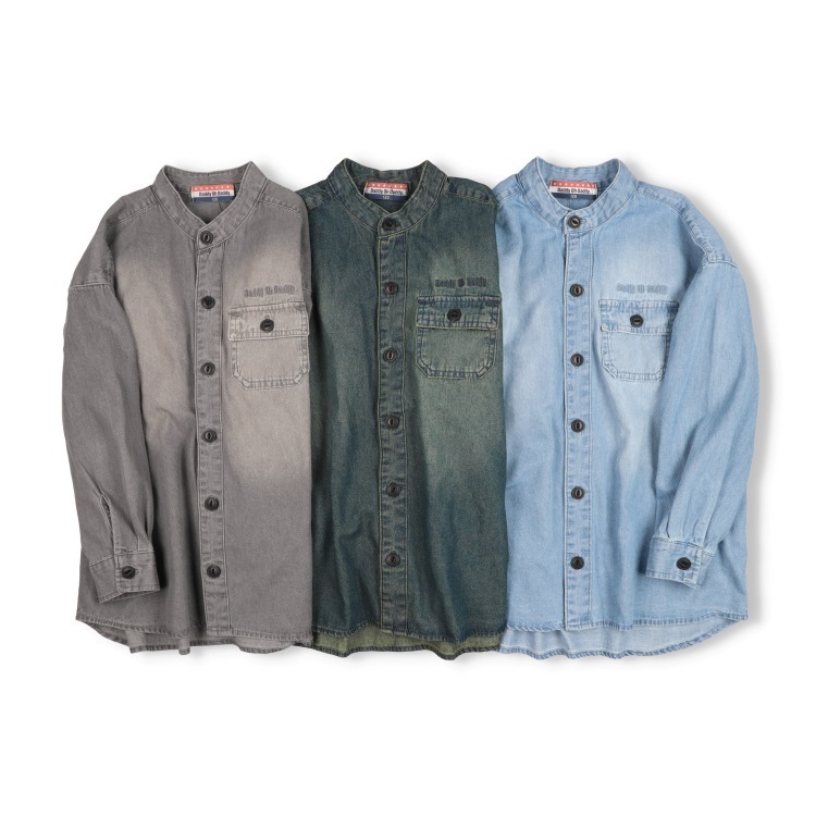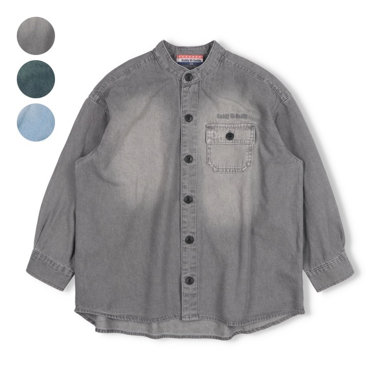 *【WEB限定】バンドカラーデニム長袖シャツ