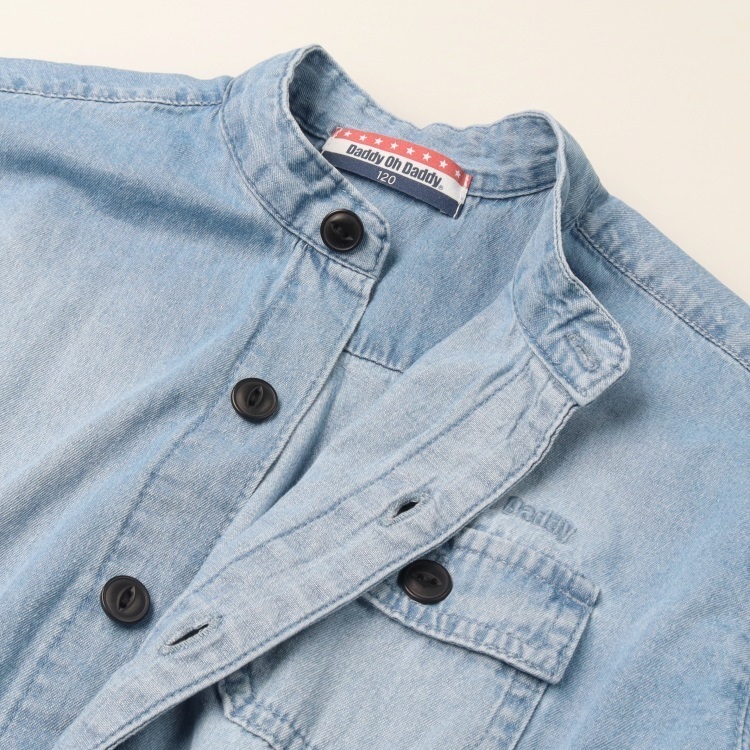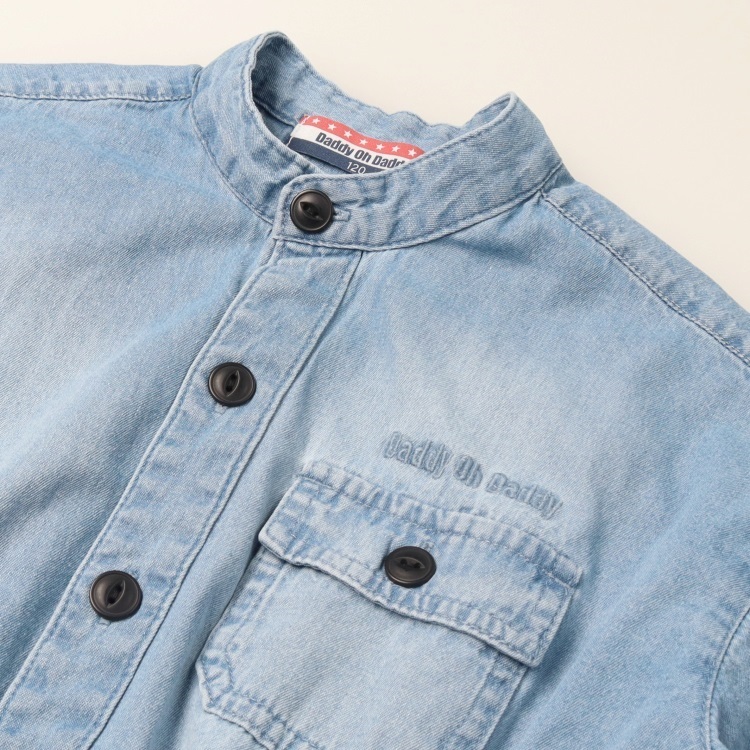 *【WEB限定】バンドカラーデニム長袖シャツ(ブルー-120cm)