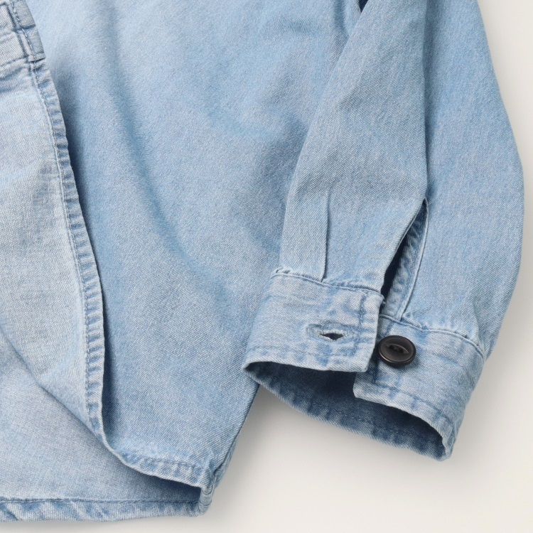 *【WEB限定】バンドカラーデニム長袖シャツ(ブルー-150cm)