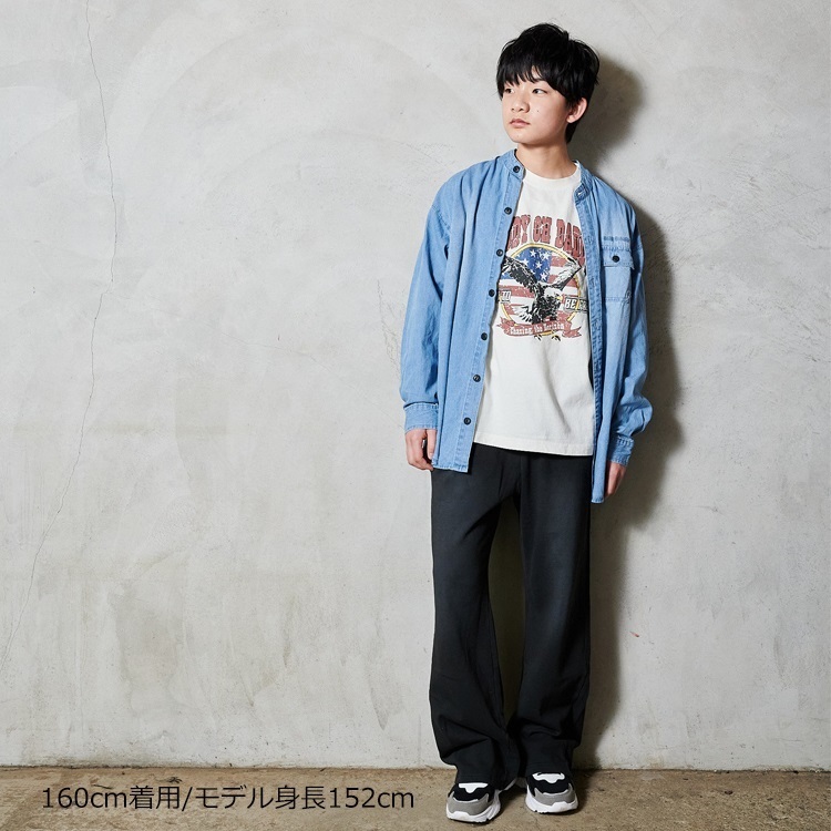 *【WEB限定】バンドカラーデニム長袖シャツ(ブラック-150cm)