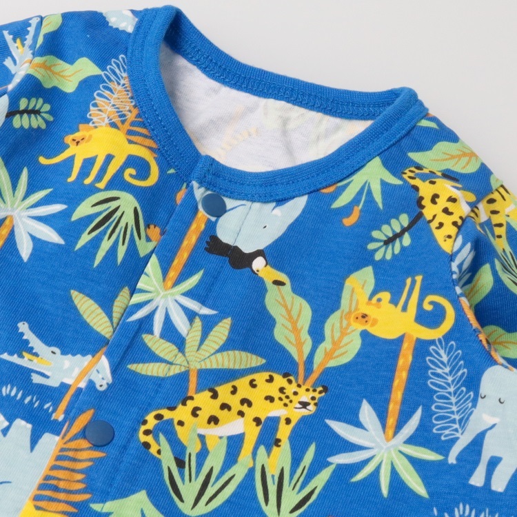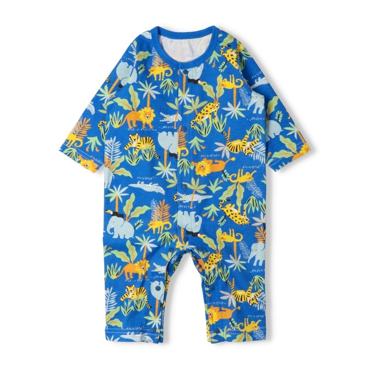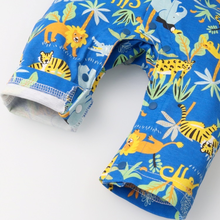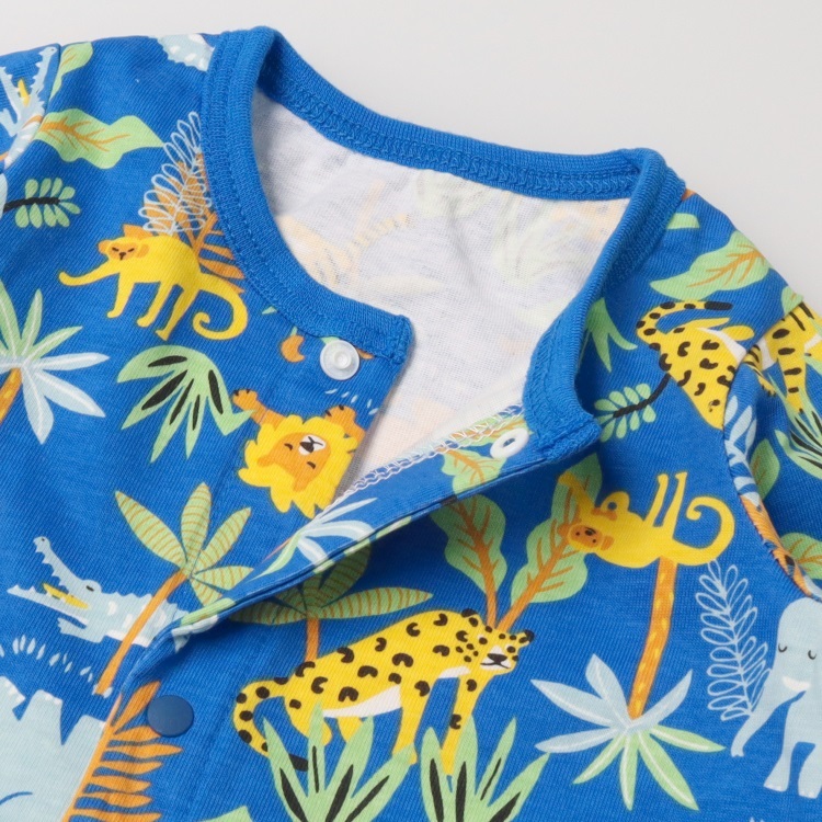 *【WEB限定】動物総柄長袖Tシャツロンパース(ブルー-70cm)