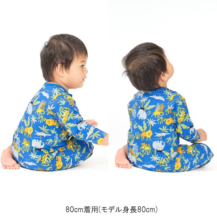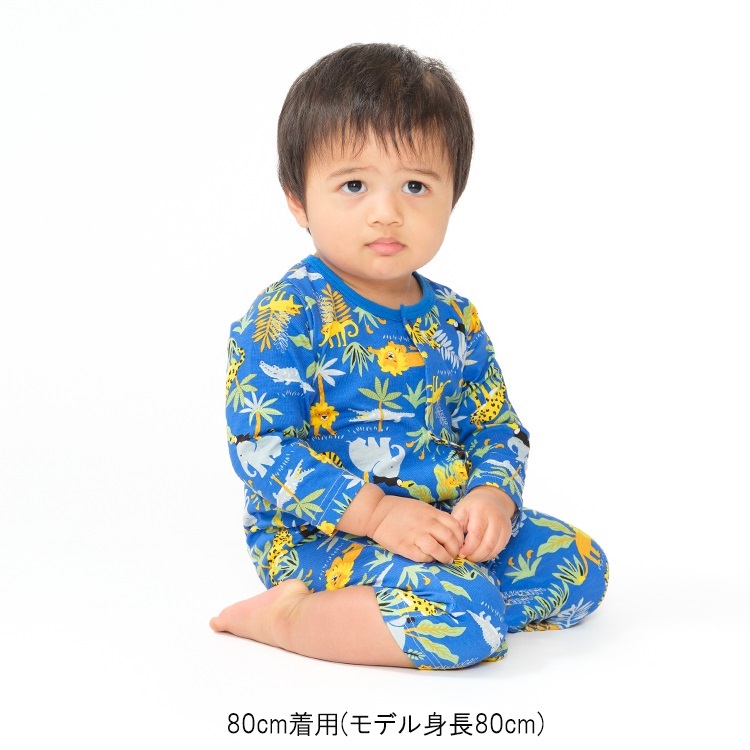 *【WEB限定】動物総柄長袖Tシャツロンパース(ブルー-80cm)