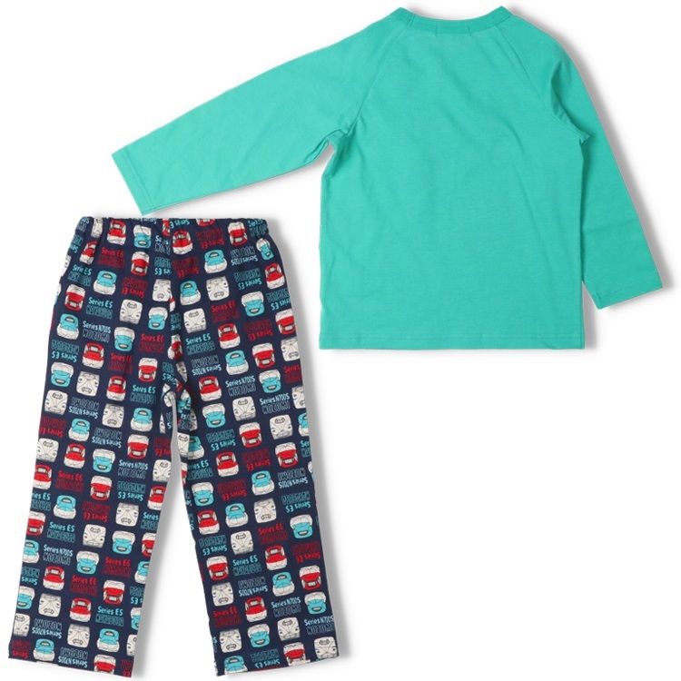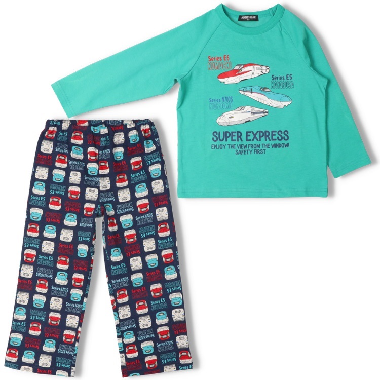 *JR新幹線電車プリント長袖パジャマ(エメラルドグリーン-100cm)
