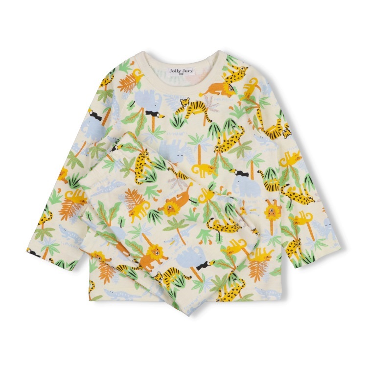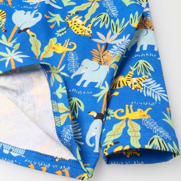 ゾウやひょうやトラなどいろいろな動物の総柄プリント入り。