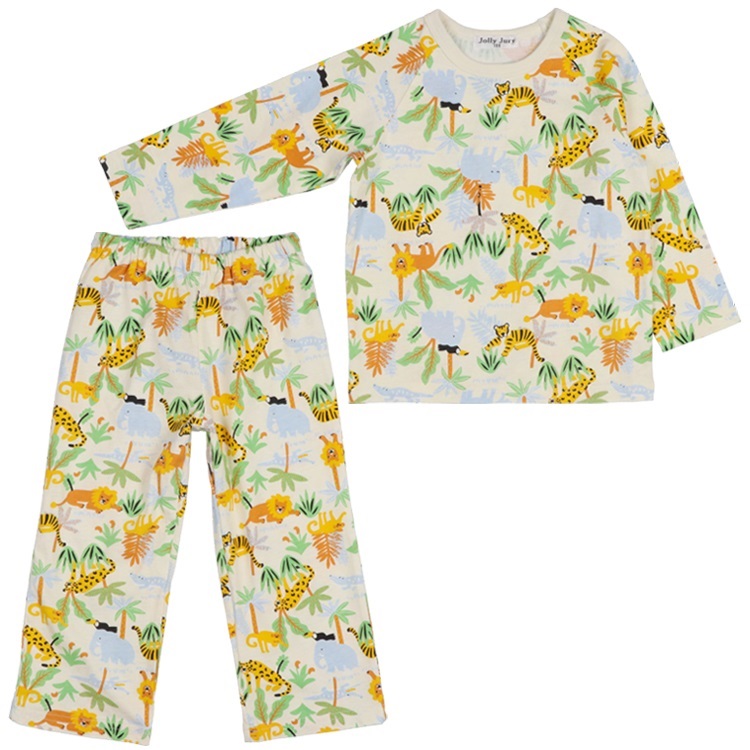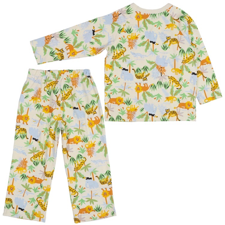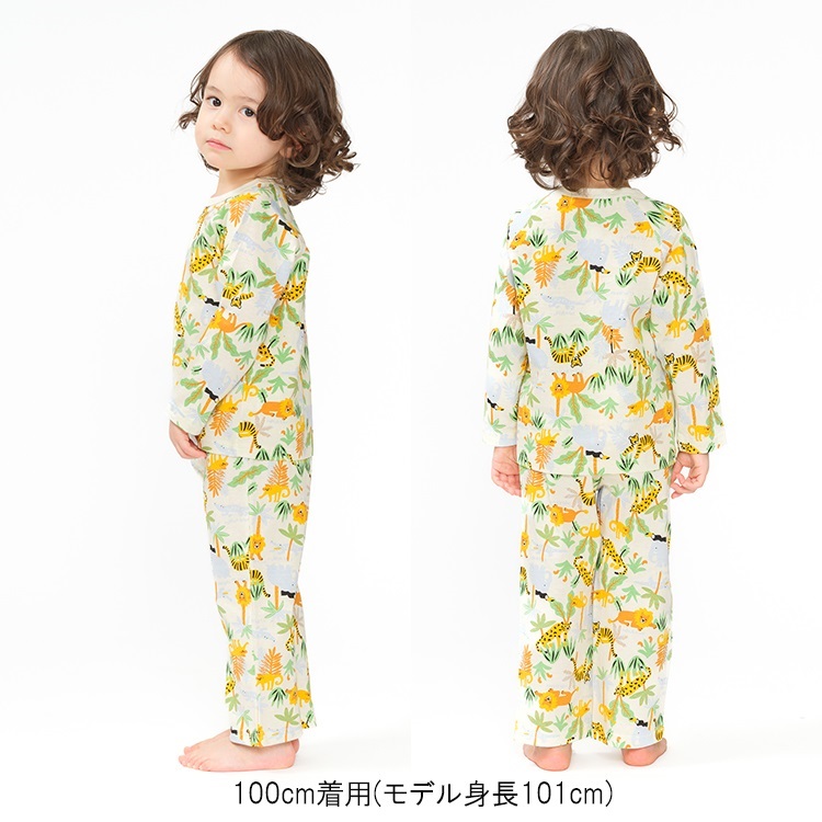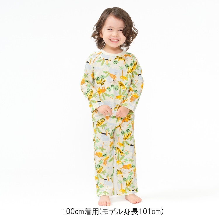 *【WEB限定】動物総柄長袖Tシャツパジャマ(ホワイト-100cm)