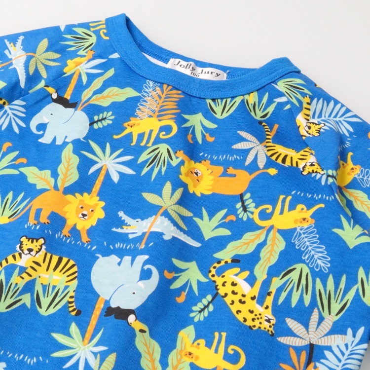 *【WEB限定】動物総柄長袖Tシャツパジャマ(ブルー-80cm)