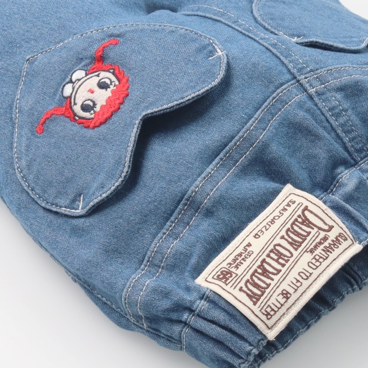 *ダディコ刺繍デニムロングパンツ(ブルー-100cm)