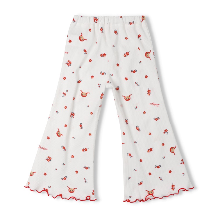 *ダディコ総柄ワッフルフレアロングパンツ(ホワイト-100cm)