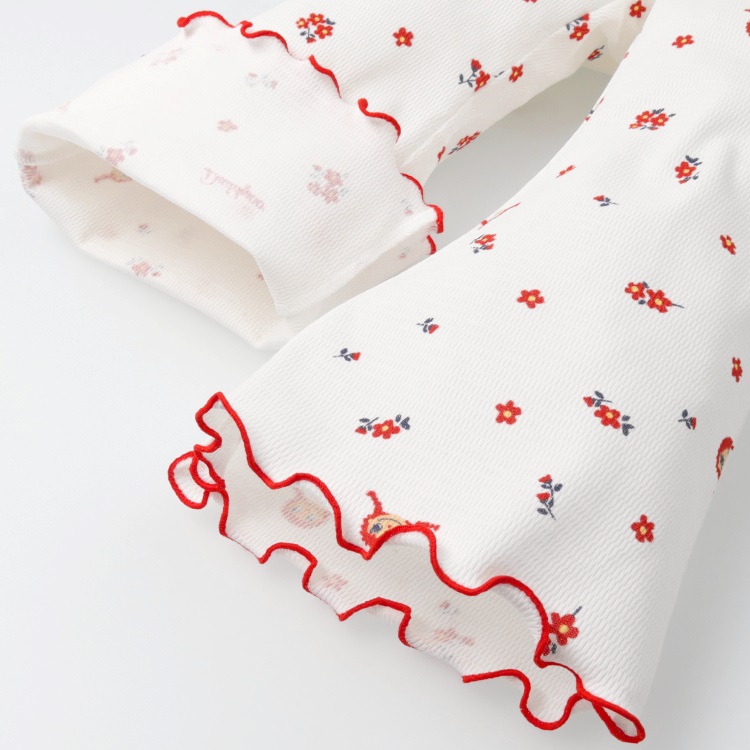 *ダディコ総柄ワッフルフレアロングパンツ(ホワイト-90cm)