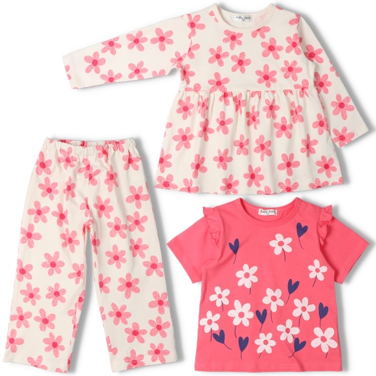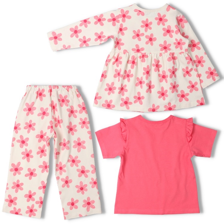 *お花柄半袖・長袖パジャマセット(ピンク-100cm)