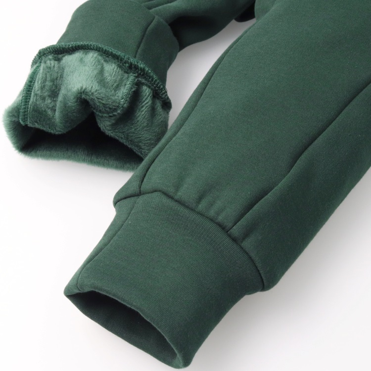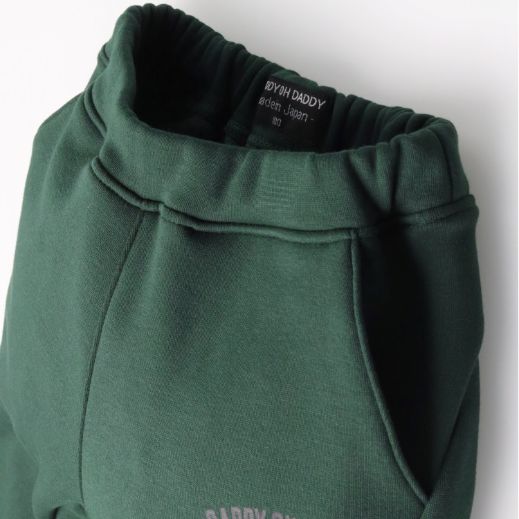 【爆温】ロゴプリント裏起毛裾リブロングパンツ(グリーン-90cm)