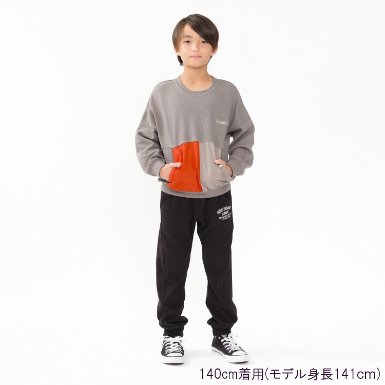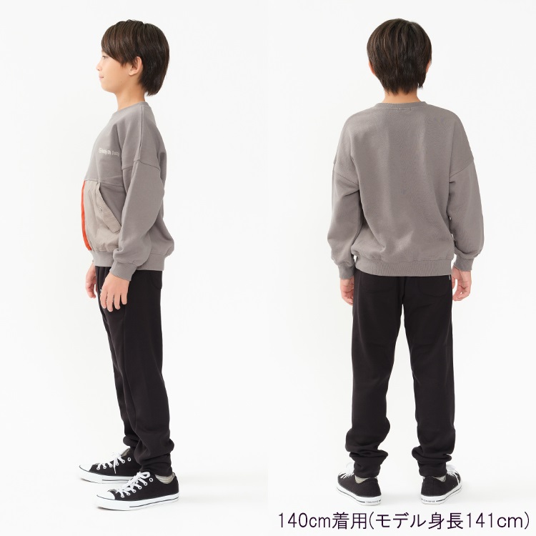 【爆温】ロゴプリント裏起毛裾リブロングパンツ(ブラック-140cm)