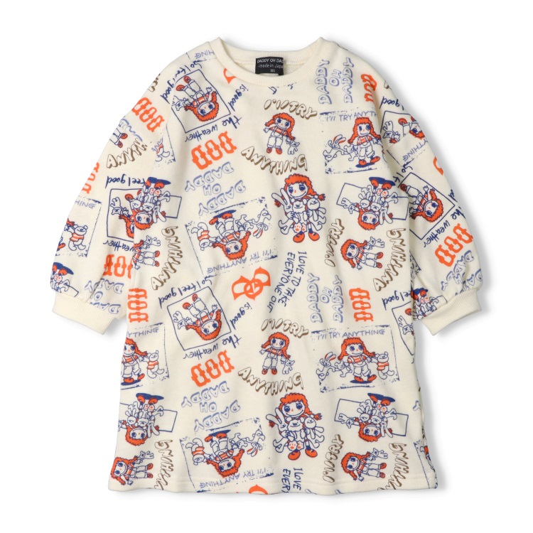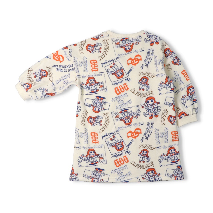 *ダディコ総柄裏毛長袖ワンピース(ホワイト-120cm)
