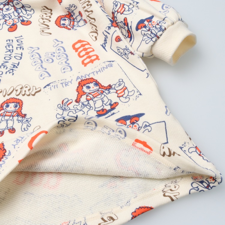 *ダディコ総柄裏毛長袖ワンピース(ホワイト-100cm)