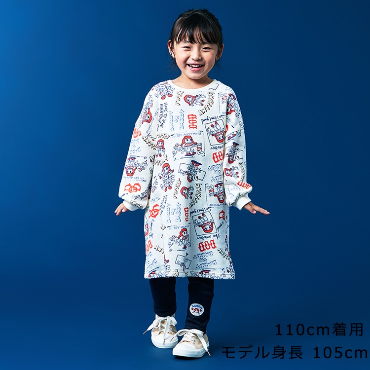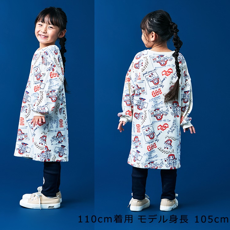 *ダディコ総柄裏毛長袖ワンピース(ホワイト-110cm)