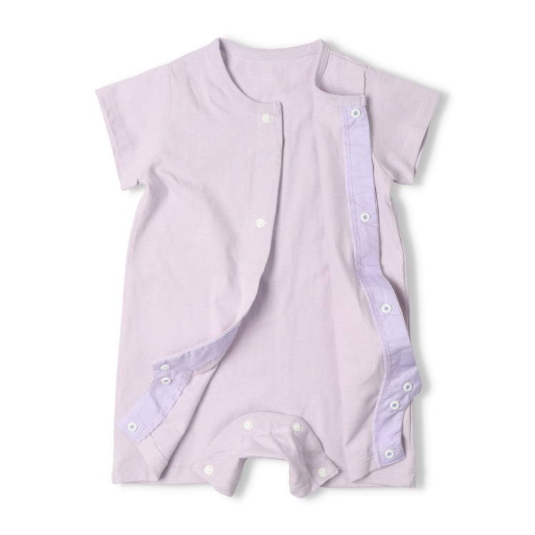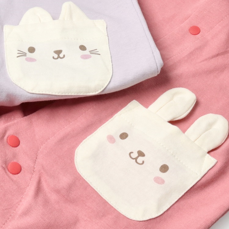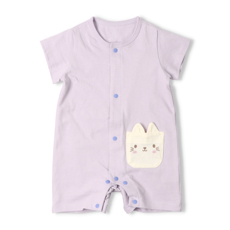*ねこ・うさぎポケット半袖ロンパース(ラベンダー-70cm)