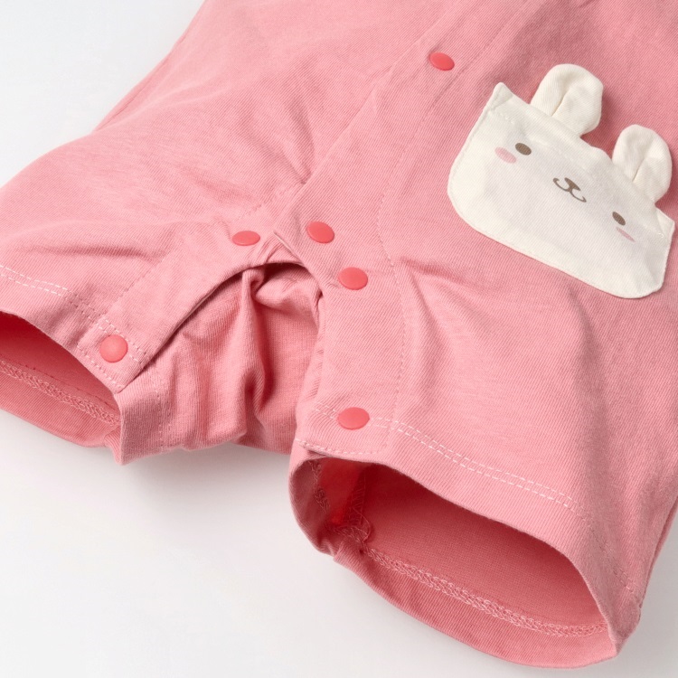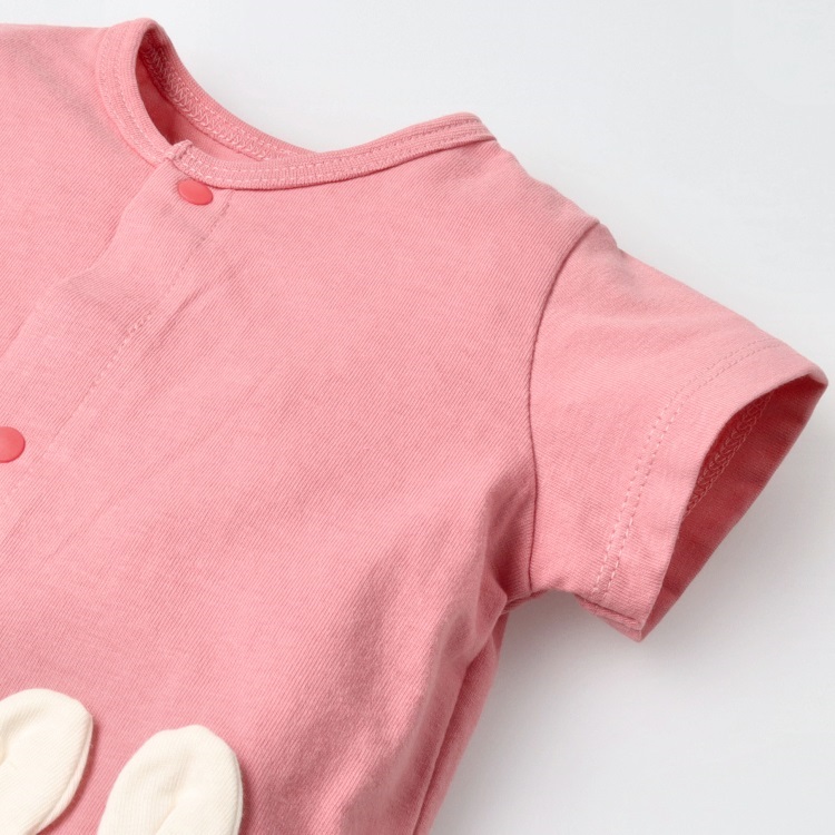*ねこ・うさぎポケット半袖ロンパース(アプリコット-80cm)