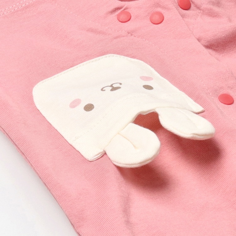 *ねこ・うさぎポケット半袖ロンパース(アプリコット-70cm)