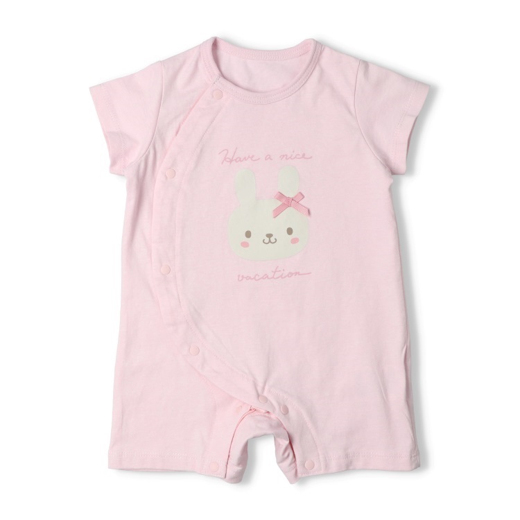 *ねこ・うさぎプリント半袖ロンパース(ピンク-70cm)