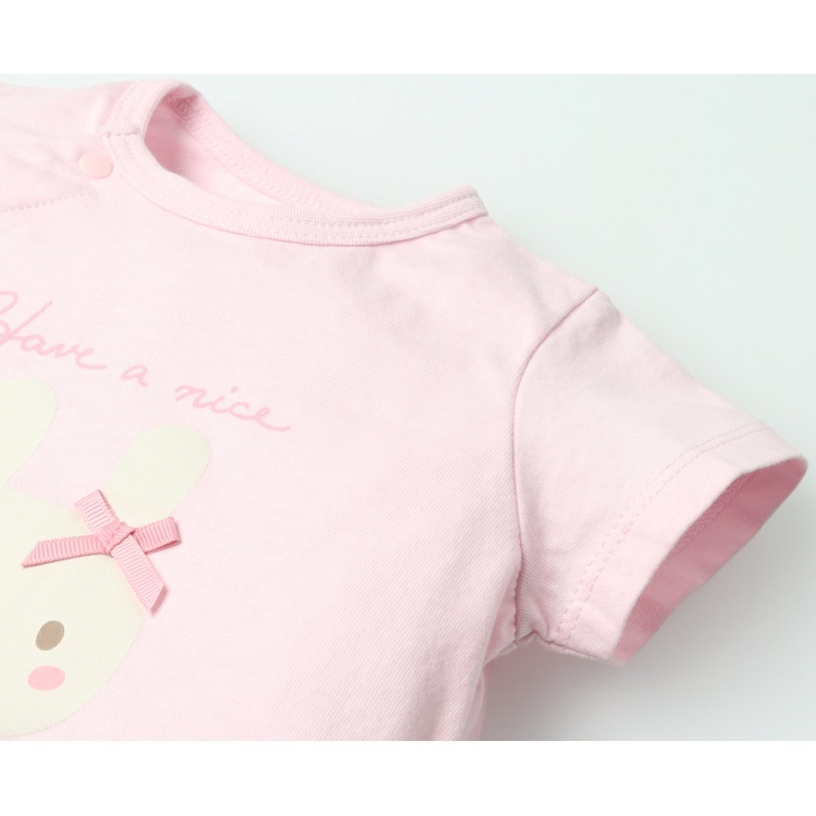 *ねこ・うさぎプリント半袖ロンパース(ピンク-80cm)
