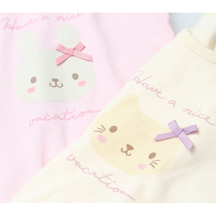 オフホワイトにはねこ、ピンクにはうさぎのプリント入り。