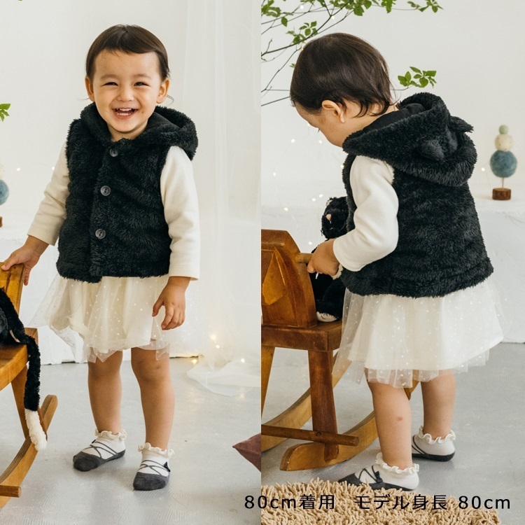 動物ボアベスト(ブラック-80cm)
