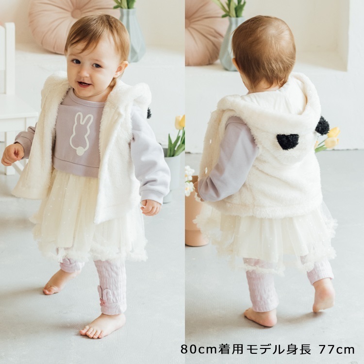 動物ボアベスト(オフホワイト-80cm)